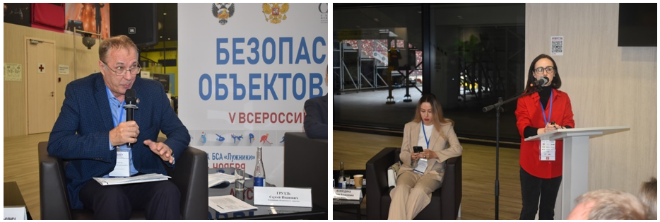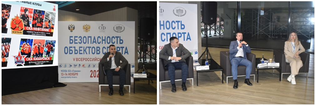 О практических аспектах и проблемах обеспечения безопасности спортивных объектов и возможности использования опыта смежных отраслей, в частности в сфере транспортной безопасности рассказали содокладчики Антон Литинецкий, корпоративный директор ООО «Ангар 17» и Тимур Исмаилов, учредитель ООО «Альфа Транспортная Безопасность» .
